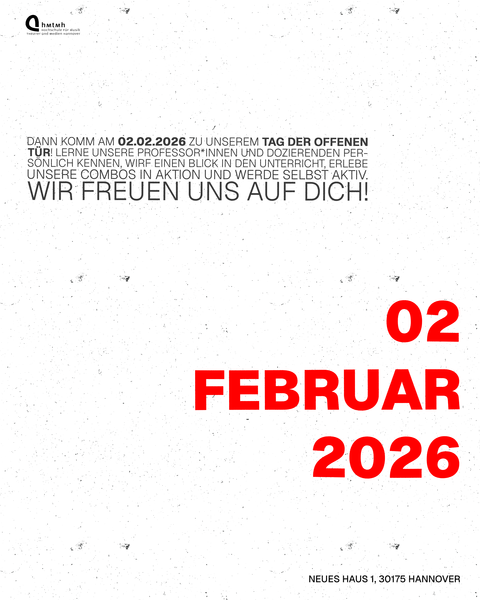 Du möchtest Jazz in Hannover studieren? Das Institut für Jazz|Rock|Pop der Hochschule für Musik, Theater und Medien Hannover veranstaltet am Montag, 02. Februar 2026 einen Tag der offenen Tür im Hauptgebäude der HMTMH am Neuen Haus 1.